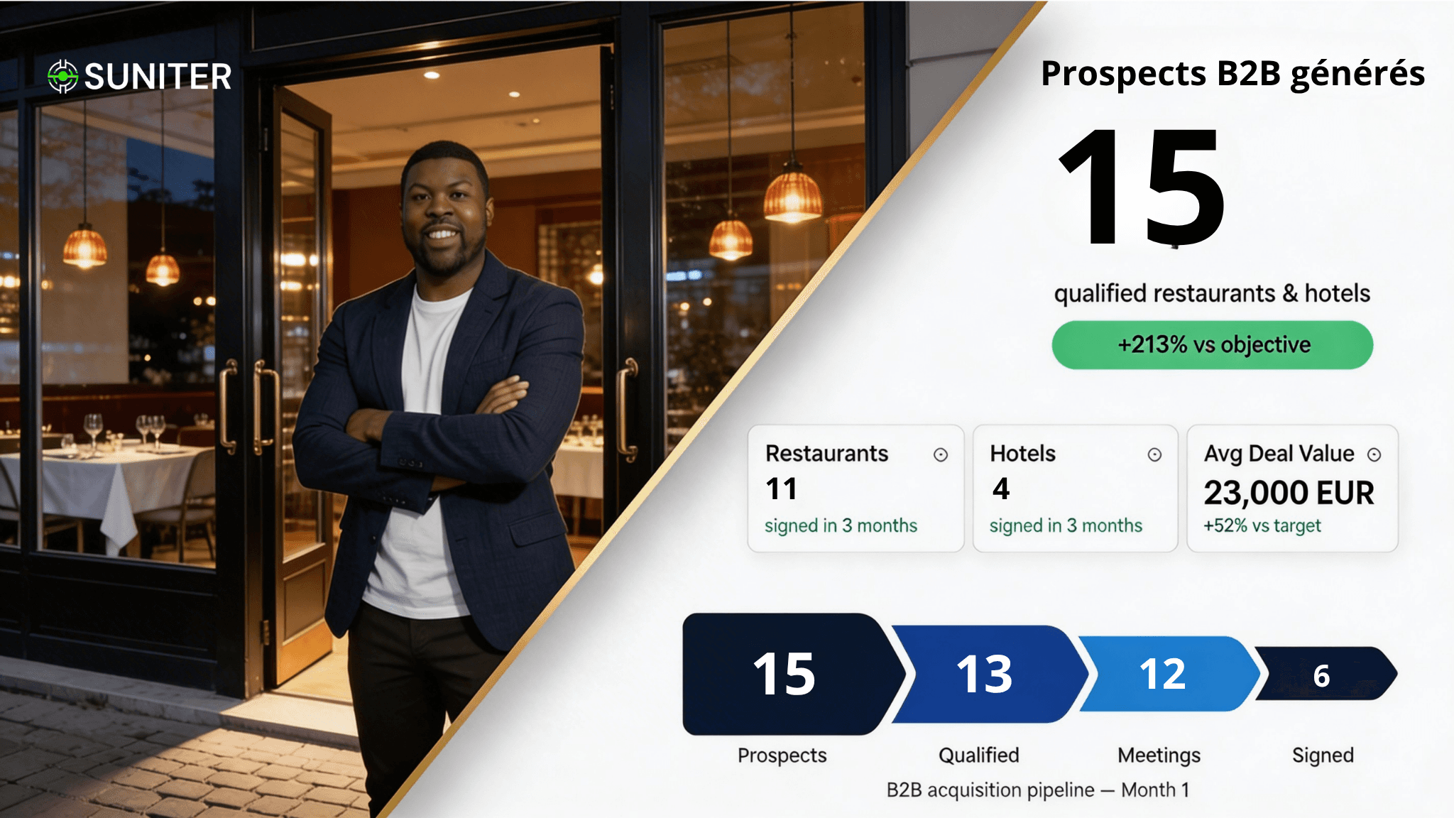 15 leads B2B qualifiés dès le premier mois - restaurants & hôtels